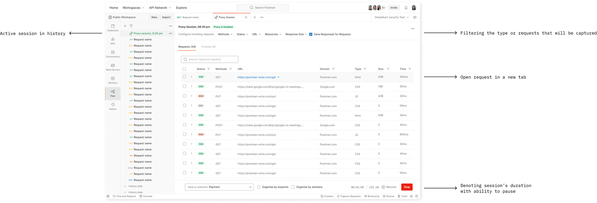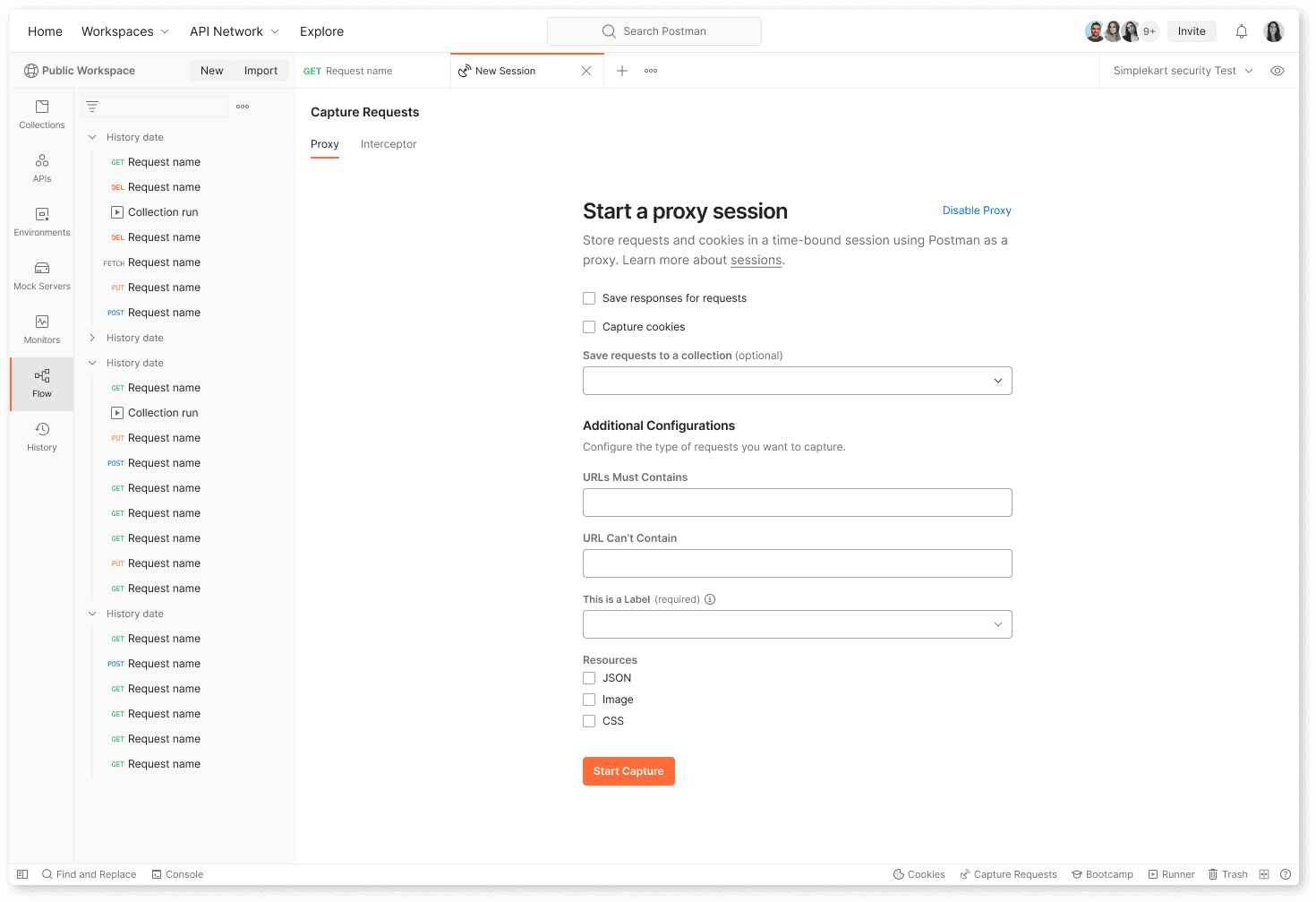 The existing request capturing experience in Postman presented several challenges. The process of capturing requests can be broken down into 3 steps.