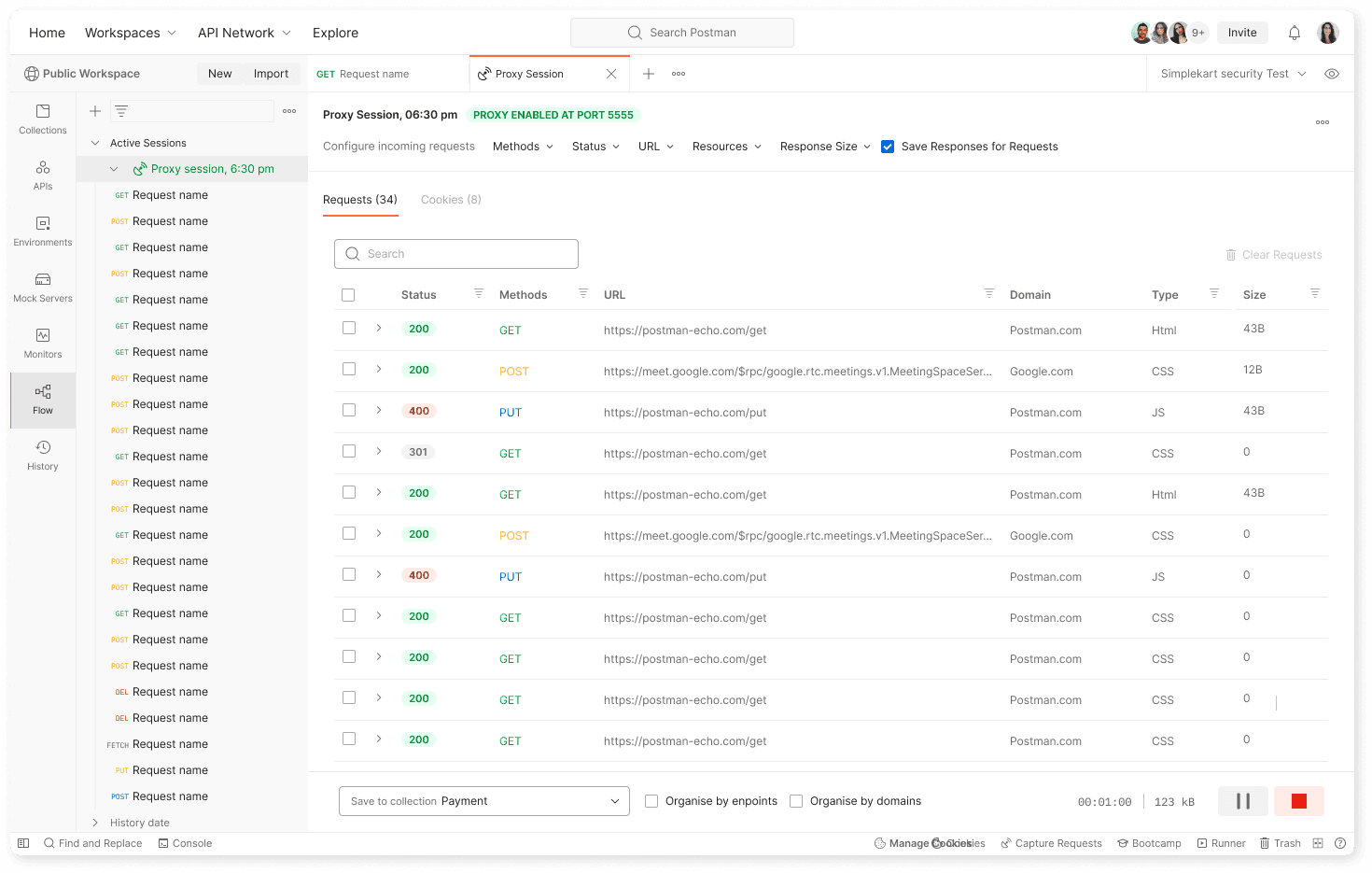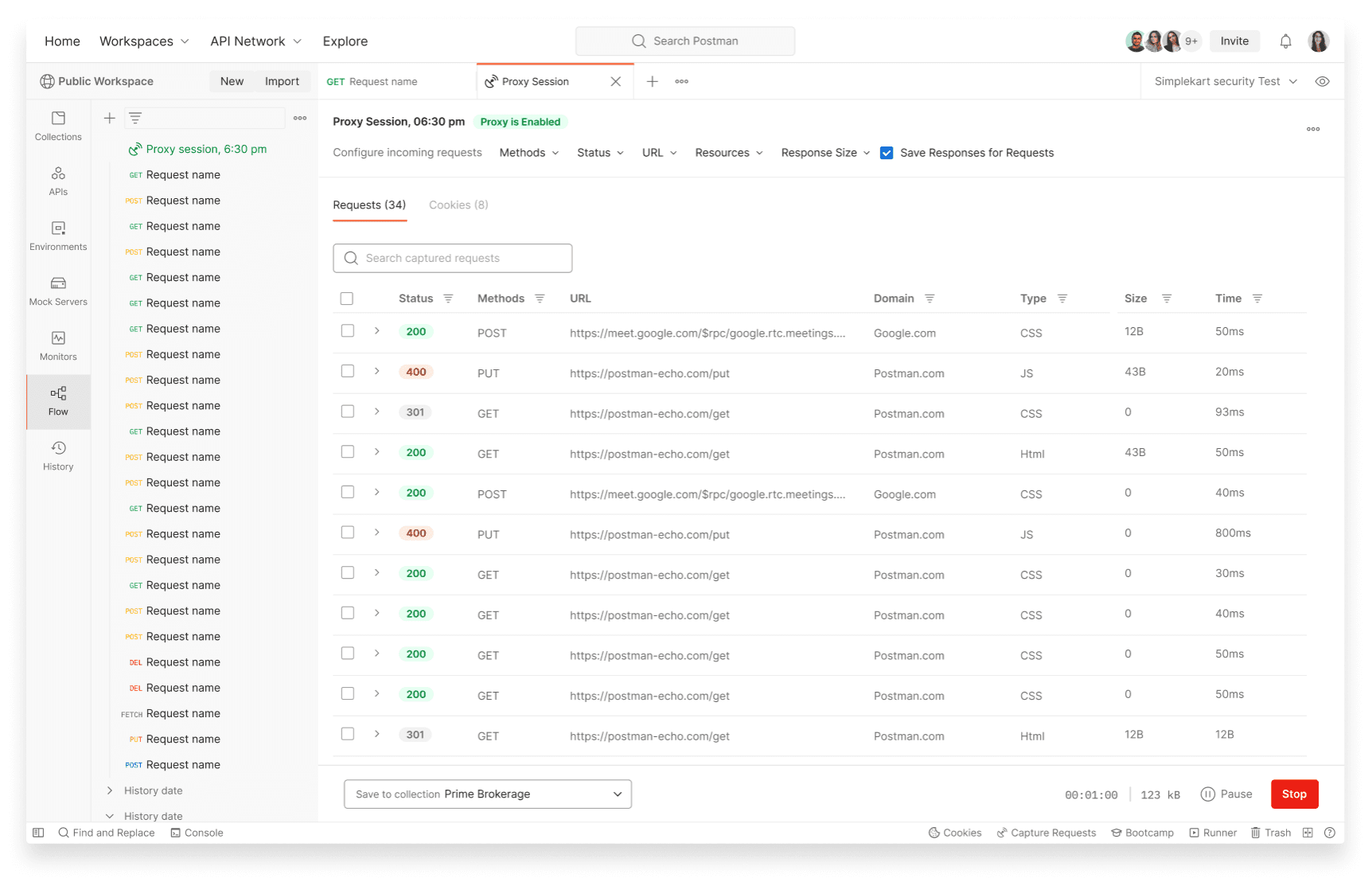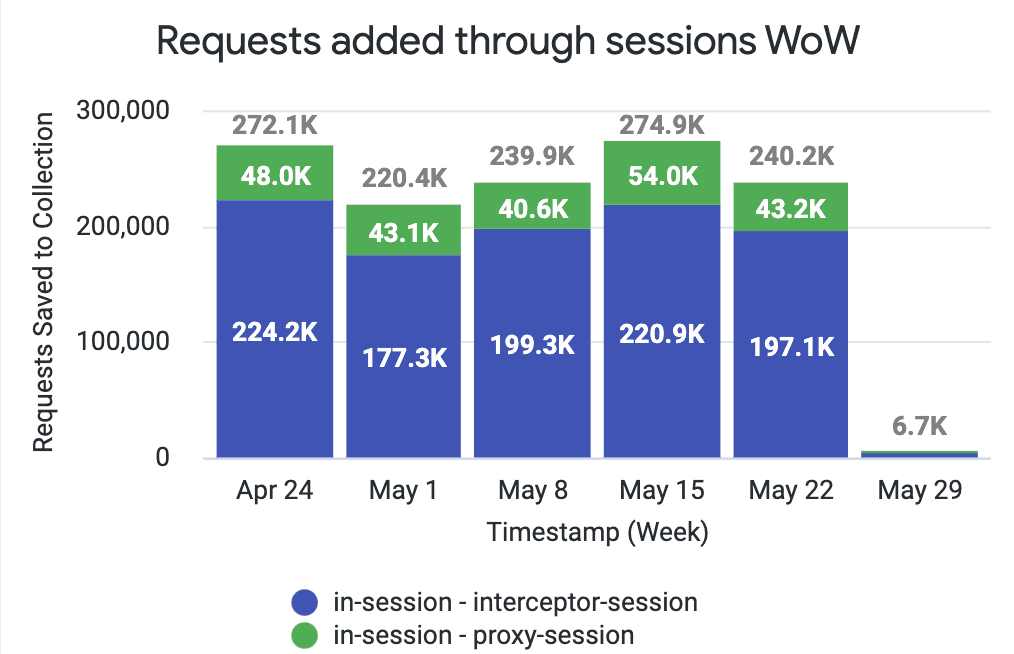 Currently around 200,000 requests are getting added to Postman via Proxy and Interceptor.