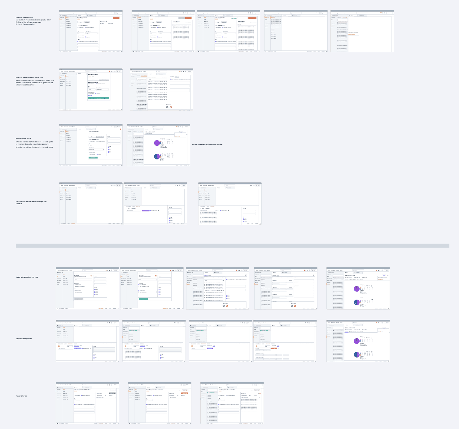 To gain a better understanding of the industry standards and identify areas where Postman fell short, a comprehensive analysis of other proxy and network capturing tools was conducted. This analysis provided valuable insights for the redesign process.Creating Wireframes and Mockups: