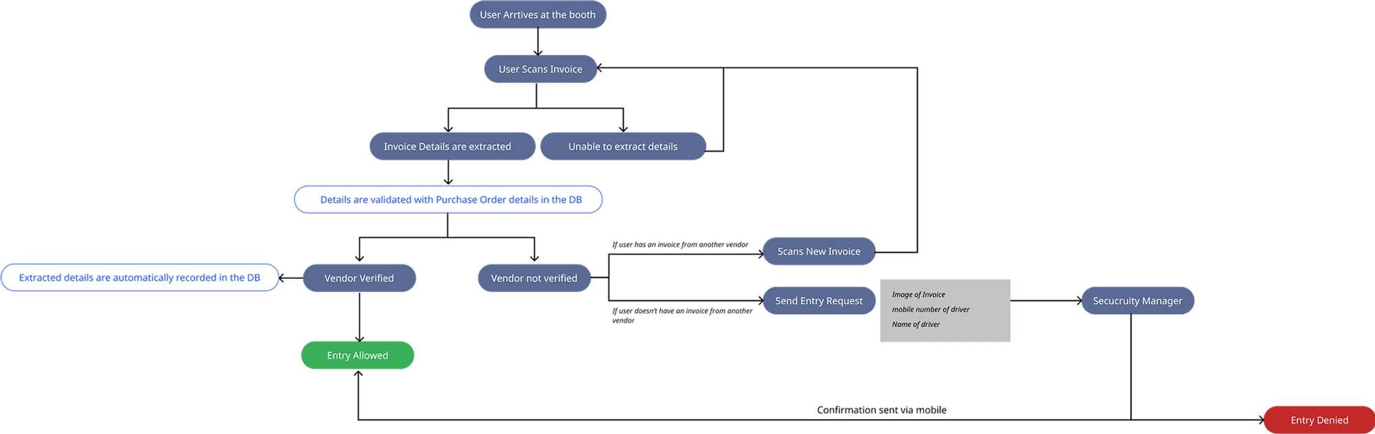 In the present scenario, the driver carries more than one invoice. These invoices might belong to multiple vendors. For the system to grant the user's entry, we need one verified invoice.